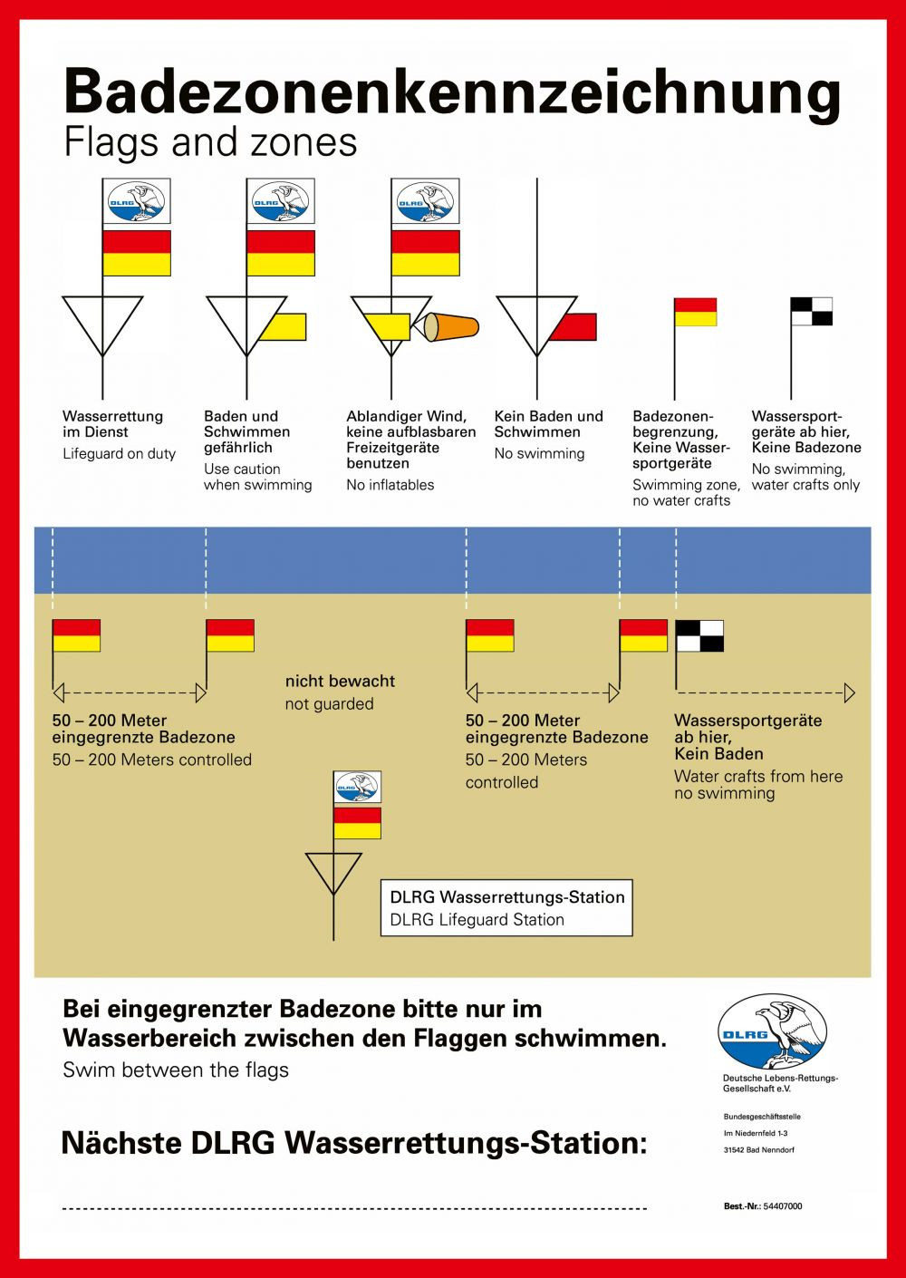 Rot und Gelb sind die Farben, die Badegästen, Urlaubern und Wassersportlern wichtige Hinweise über die Bewachung der Strände, Risiken und andere Rahmenbedingungen geben.